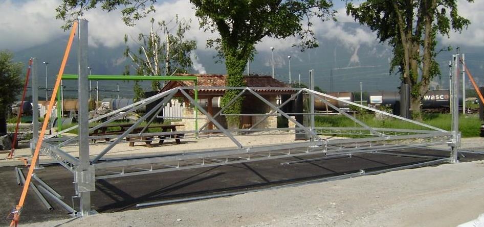 La couverture s’élève grâce à un mécanisme de vis sans fin situé dans chaque pilier.